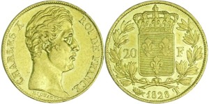 Lot 039/724 MODERN FRENCH COINS - Louis XVIII to Louis-Philippe :: France - Charles X (1824-1830) - 20 francs 1828 T (Nantes)