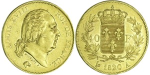 Lot 039/711 MODERN FRENCH COINS - Louis XVIII to Louis-Philippe :: France - Louis XVIII (1815-1824) - 40 francs 1820 A (Paris)