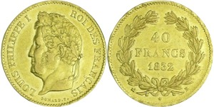 Lot 039/730 MODERN FRENCH COINS - Louis XVIII to Louis-Philippe :: France - Louis-Philippe Ier (1830-1848) - 40 francs 1832 B (Rouen)
