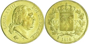 Lot 039/713 MODERN FRENCH COINS - Louis XVIII to Louis-Philippe :: France - Louis XVIII (1815-1824) - 40 francs 1816 L (Bayonne)