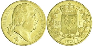 Lot 039/716 MODERN FRENCH COINS - Louis XVIII to Louis-Philippe :: France - Louis XVIII (1815-1824) - 20 francs au buste nu 1820 A (Paris)