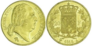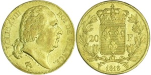 Lot 039/718 MODERN FRENCH COINS - Louis XVIII to Louis-Philippe :: France - Louis XVIII (1815-1824) - 20 francs au buste nu 1818 A (Paris)