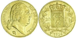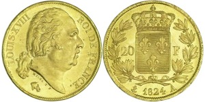 Lot 039/719 MODERN FRENCH COINS - Louis XVIII to Louis-Philippe :: France - Louis XVIII (1815-1824) - 20 francs au buste nu 1824 A (Paris)