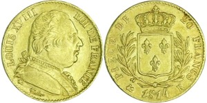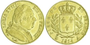 Lot 039/706 MODERN FRENCH COINS - Louis XVIII to Louis-Philippe :: France - Louis XVIII (1815-1824) - 20 francs au buste habillé 1814 A (Paris)