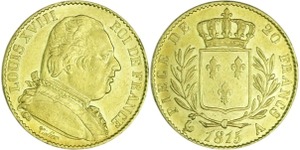 Lot 039/707 MODERN FRENCH COINS - Louis XVIII to Louis-Philippe :: France - Louis XVIII (1815-1824) - 20 francs au buste habillé 1815 A (Paris)