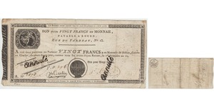 Lot 039/953 PAPER MONEY :: France - Assignat - BON POUR VINGT FRANCS EN MONNAIE PAYABLE A ROUEN L'AN 12 - Annulé