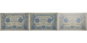 Lot 039/964 PAPER MONEY :: France - 5 francs (Bleu) Type 1905 - Lot de 3 billets