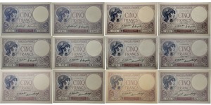 Lot 039/966 PAPER MONEY :: France - 5 francs (Violet) Type 1917 - Lot de 12 billets