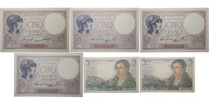 Lot 039/967 PAPER MONEY :: France - 5 francs (Violet) et (Berger) - Lot de 6 billets