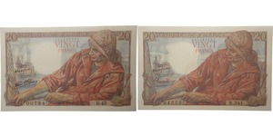 Lot 039/973 PAPER MONEY :: France - 20 francs (Pecheur) Type 1942 - Lot de 2 billets