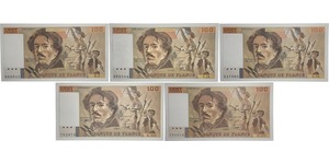 Lot 039/1070 PAPER MONEY :: France - 100 francs (Delacroix) Type 1978 - Lot de 5 billets