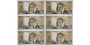 Lot 039/1074 PAPER MONEY :: France - 500 francs (Pascal) Type 1968 - Lot de 6 billets