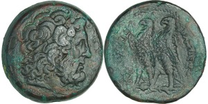 R/ ΑΛΕΞΑΝΔΡΟΥ Zeus assis à gauche tenant un sceptre et un aigle. Sous son bras ...