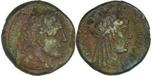 A/ Tête divinisée d'Alexandre le Grand sous les traits de Zeus-Ammon.