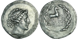 Lot 039/272 GREEK COINS :: Eolide - Kymé - Tétradrachme stéphanophore (165-140 av. J.-C.) Magistrat Metrophanes