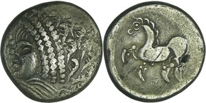 Lot 039/302 CELTIC COINS :: Celtes de l'est - Danube - Tétradrachme au cavalier, type de "Kinnlosen" (150-50 av. J.-C.)