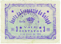Golegã 3 e 4 CENTAVOS 2 cédulas , 06/07/1921 . Bela ...