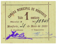 Monforte 1 e 2 CENTAVOS 2 cédulas, 31/04/1920 . Bela ...