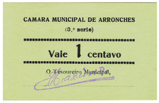 Arronches 1 e 2 CENTAVOS 3º serie n/d 2 cédulas , 1921 . Bela ...