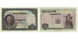 5000 Réis Prata - Ch. 7 - 14/11/1906 - Marquês de Pombal RS.63 / Pick.104 MBC ...