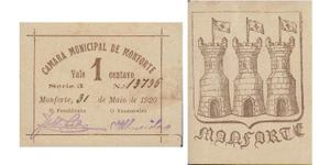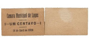 PAPEL. Câmara Municipal. 1 Centavo 20 Mai 1921. Dupla face. "MU". Várias dimensões. CMA 920. ...