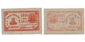 Lot 026/8 :: Cédula - Almada 2 expl. 1, 2 Centavos 1921