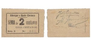 PAPEL. Albergue e Azylo Elvenses. 2 Centavos N/D. Serie B. Nº 3600. Uniface. Selo branco. 3 chancelas separadas. Manuscr ...