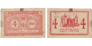 PAPEL. Câmara Municipal. 4 Centavos N/D. Dupla face. ESCASSA. 10x6,4 cm. CMA 1911. ...