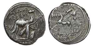 Lot 026/381 :: M. Aemilius Scaurus, P. Plautius Hypsaeus - Denarius nd