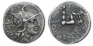 AR. Denarius nd (120 BC). M TVLLI. 3,85 g. SM 155. ...