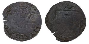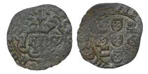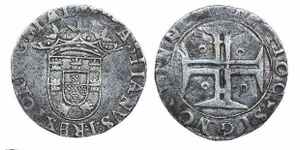 B. Real 3 1/2 Libras nd. Lisboa. IHNS.../ADIVTORIVM... Sinal oculto à direita e à esquerda. R/ Escudete central cercado ...