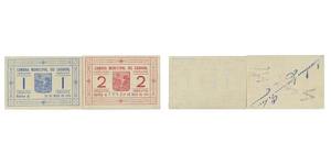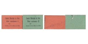 PAPEL. Câmara Municipal. 1, 2 Centavos 9 Abr 1921. Numeradas. Uniface. Carimbo no verso. Várias dimensões. CMA 417, 418. ...