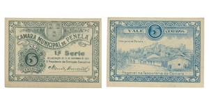 PAPEL. Câmara Municipal. 5 Centavos 25 Nov 1921. 1.ª Série. Dupla face. ESCASSA. 8,6x6,2 cm. CMA 3180. MBC. ...