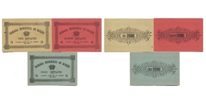 PAPEL. 50 Centavos ch. 1, 5 Jul 1918 (3); 1$00 ch. 1, 7 Set 1917 (2). Governador: Inocêncio Camacho Rodrigues; Director: ...