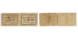 Lot 030/38 :: Cédula - Montemor-o-Novo 2 expl. 1, 5 Centavos N/D