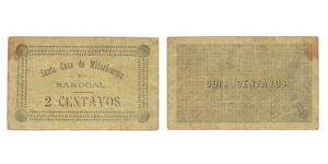 PAPEL. Santa Casa da Misericórdia. 2 Centavos N/D. Dupla face. Carimbo da Misericórdia no verso. ESCASSA. 9,6x5,9 cm. CM ...