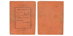 PAPEL. Câmara Municipal. 4 Centavos N/D. "S. C.". N.º 702. Uniface. RARA. 4,6x5,6 cm. CMA 3884. BC-. ...