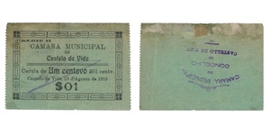 PAPEL. Câmara Municipal. 1 Centavo N/D. Uniface. Chancela. Carimbo da Câmara no verso. ESCASSA. 7,9x5,5 cm. 3690 a 3691. ...