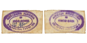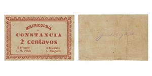 PAPEL. Misericórdia. 2 Centavos N/D. Uniface. Chancela no verso "J. Burguete". ESCASSA. 8,2x5,4 cm. CMA 1550. MBC-. ...