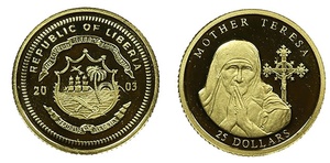 AU. 25 Dollars. Madre Teresa. KM n/c. PROOF ...