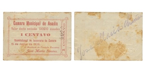 Lot 031/23 :: Cédula - Espinho 2 expl. 1, 4 Centavos 1920-1921