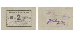 PAPEL. Albergue e Azylo Elvense. 2 Centavos N/D. Série N. Uniface. 2 chancelas no verso. Selo branco. 8,4x5,4 cm. CMA 1 ...