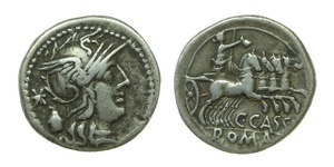 AR. Denarius nd (126 BC). C.CASSI ROMA. 3,79 g. SM 142. MBC ...
