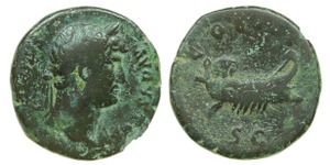 AE. Asse nd (Roma, AD 126). COS III (P P) S C. 11,25 g. SM 3682. BC ...