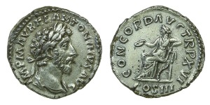 AR. Denarius nd (Rome AD 185). P M TR P XI IMP VII COS V P P - CONC MIL. 2,78 g. SM 5632v. MBC ...