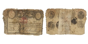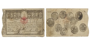 PAPEL. 1$200 Réis 1807, c/ carimbo D. Miguel I; 10$000 Réis 1799, Nº 432417, c/ carimbo D. Pedro IV. AMA 33M, 12P. MBC-; ...