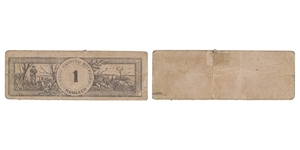 PAPEL. Câmara Municipal. 10 Centavos N/D. Dupla face. Carimbo no verso "JOÃO LOPES FRANCO / REGUENGOS". ESCASSA. 8,4x5,4 ...