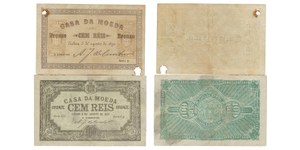 Lot 037/1 :: Cédula - 2 expl. Casa da Moeda 100 Réis 1891