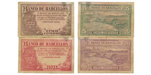 PAPEL. Banco de Barcelos. 5, 20 Centavos N/D. Dupla face. Chancela. Várias dimensões. CMA 803, 805. BC+ a MBC-. ...
