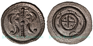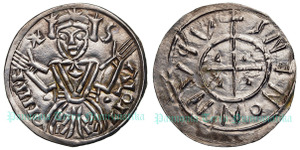 Stephen I. (997-1038) : denár EK: 1/1A C.I.: 1 H.: 1/d ÉH: 1 Ag 0,62 g Előlapi köriratban fordított S betű. Ebben az áll ...